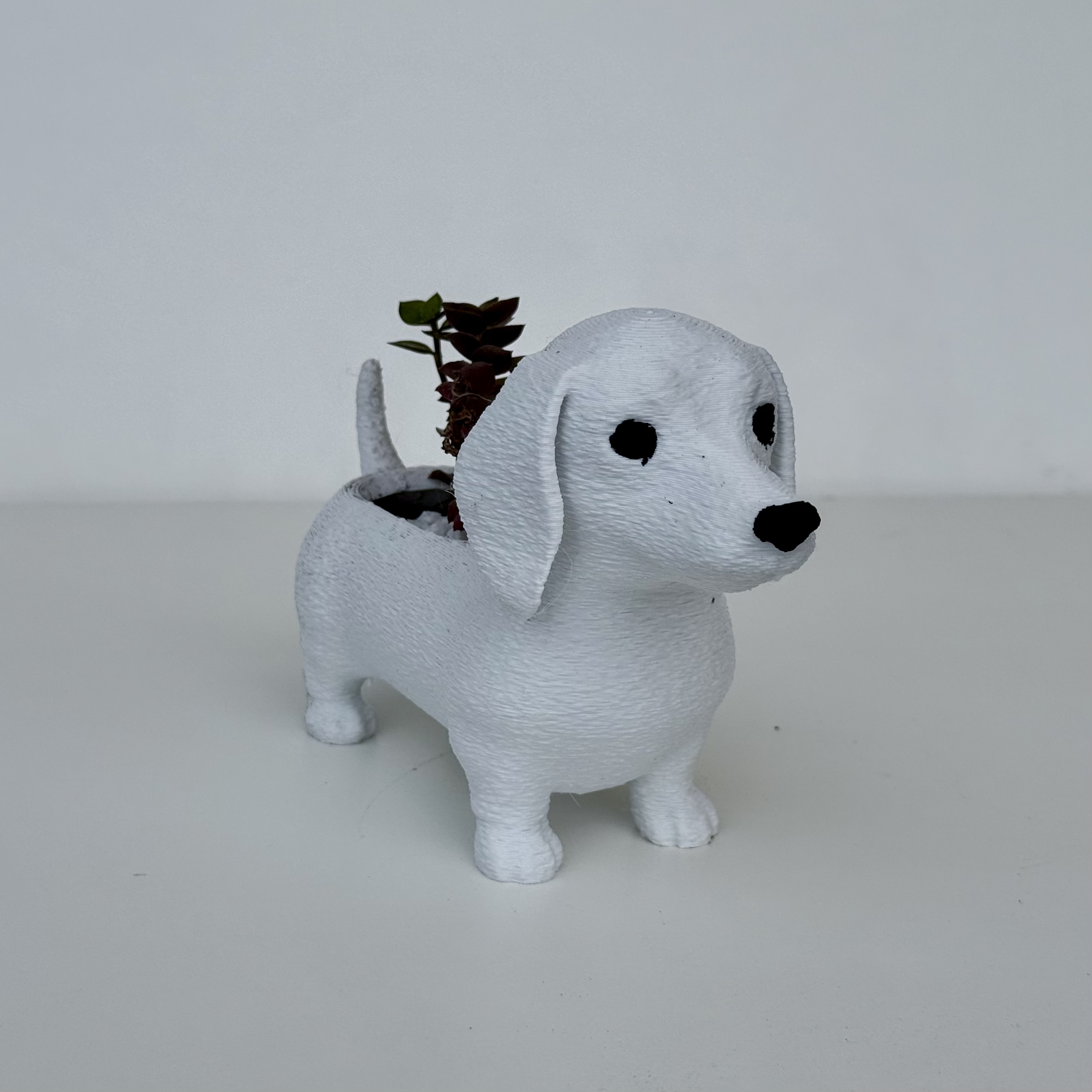 Maceta de perrito salchicha, 12cm de altura, 16cm de largo y 6,5cm de ancho. Elegilo en la combinación de colores q mas te guste.