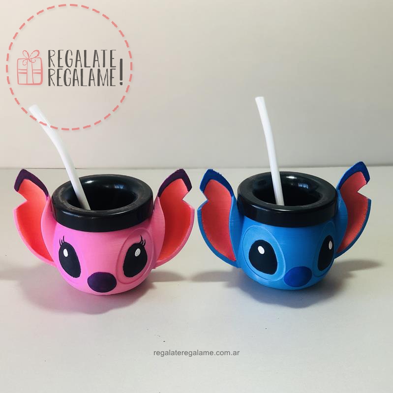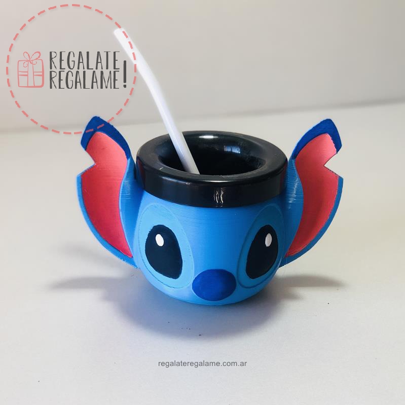Maceta con la cabeza de stitch, se puede hacer en azul o en rosa. Altura total de 15cm. No incluye planta