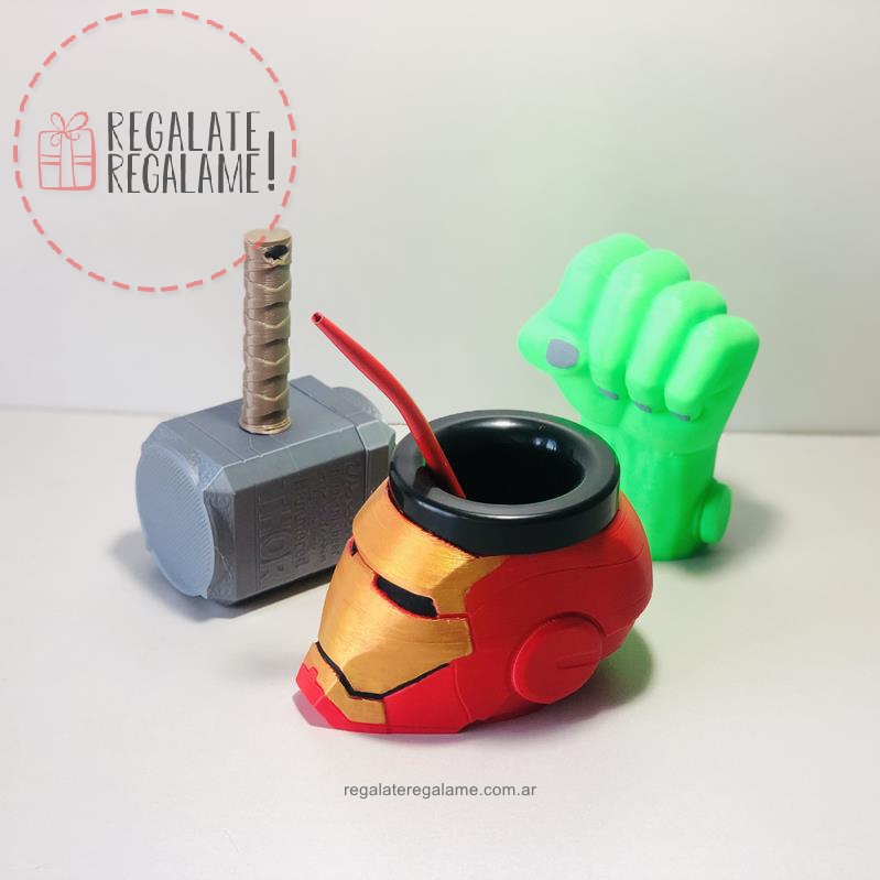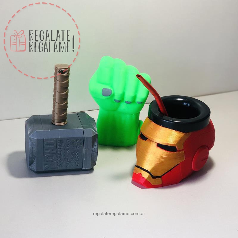 Excelente set de mate de Avengers, los vengadores de Marvel. Incluye mate de IronMan, azucarera de Hulk y yerbera de Thor. Encárgalo ahora!!