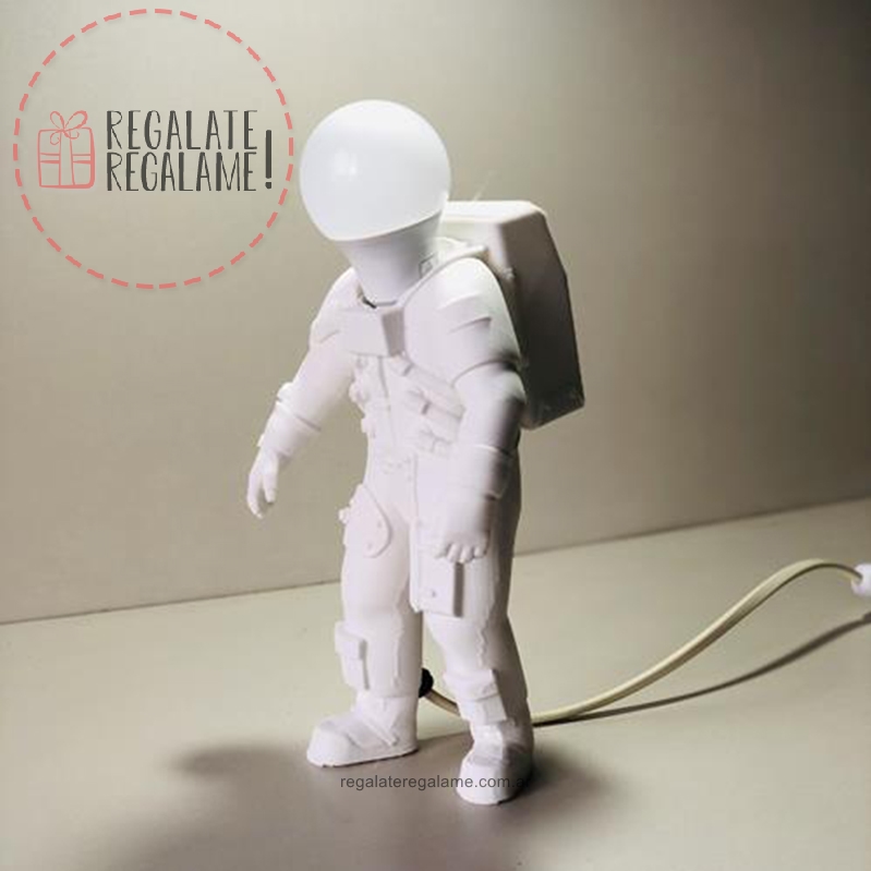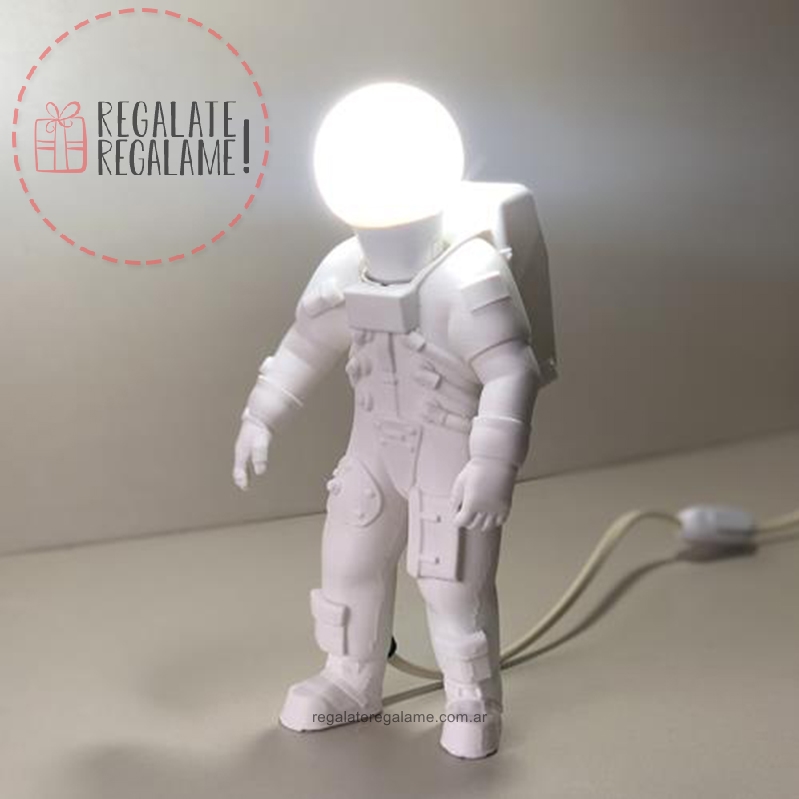 Genial velador astronauta, incluye cable de 1.5m, interruptor y lampara led de 500 lumens. Se puede poner cualquier lampara del mercado.