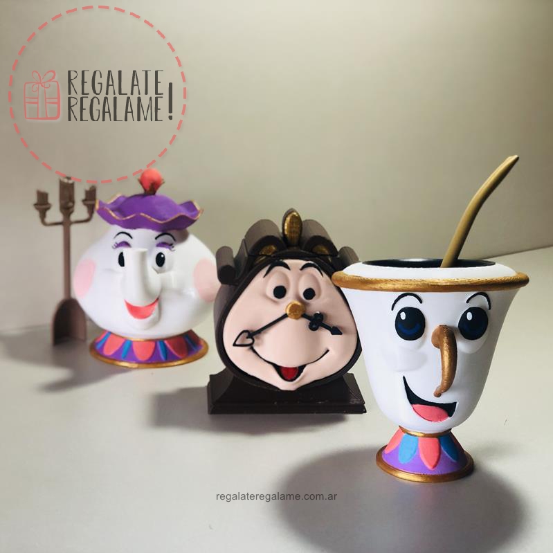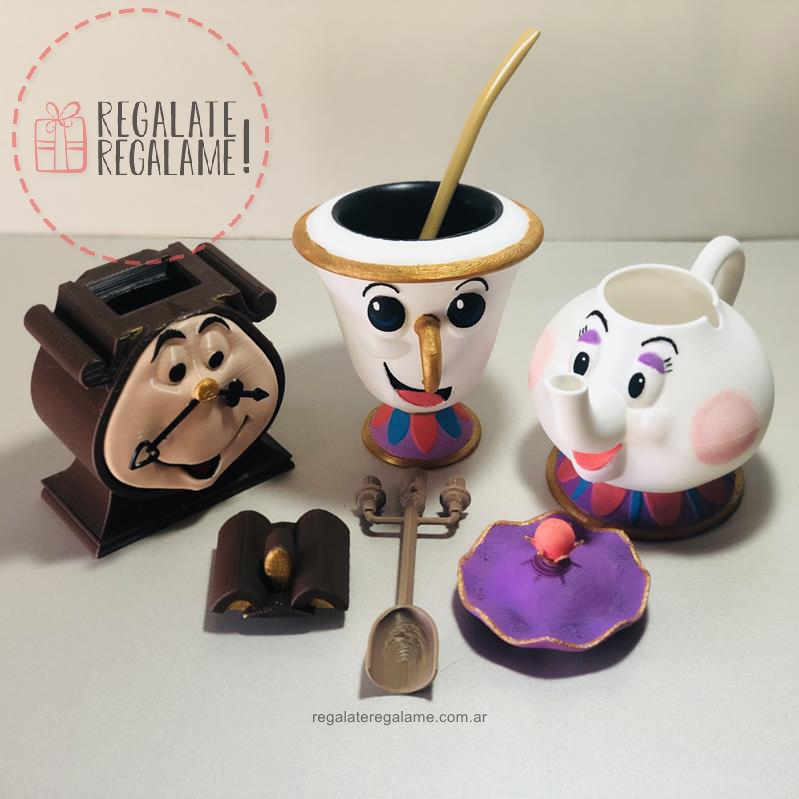 Set de mate de la bella y la bestia, excelente set matero para usar y decorar tu casa con este emblemática peli de Disney. Incluye mate de Chip com bombilla, yerbera de señora potts, azucarera de ding dong y cucharita de lumiere. Pintado a mano, se realiza a pedido.Â