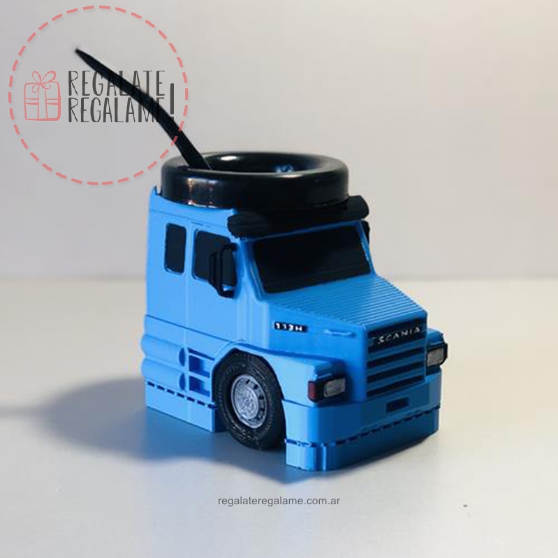 Mate de Scania 113H. Todos los detalles de este clasico camion. Pedilo en el color que mas te guste y personalÃzalo con nombre en el parabrisas. Se entrega con bombilla.