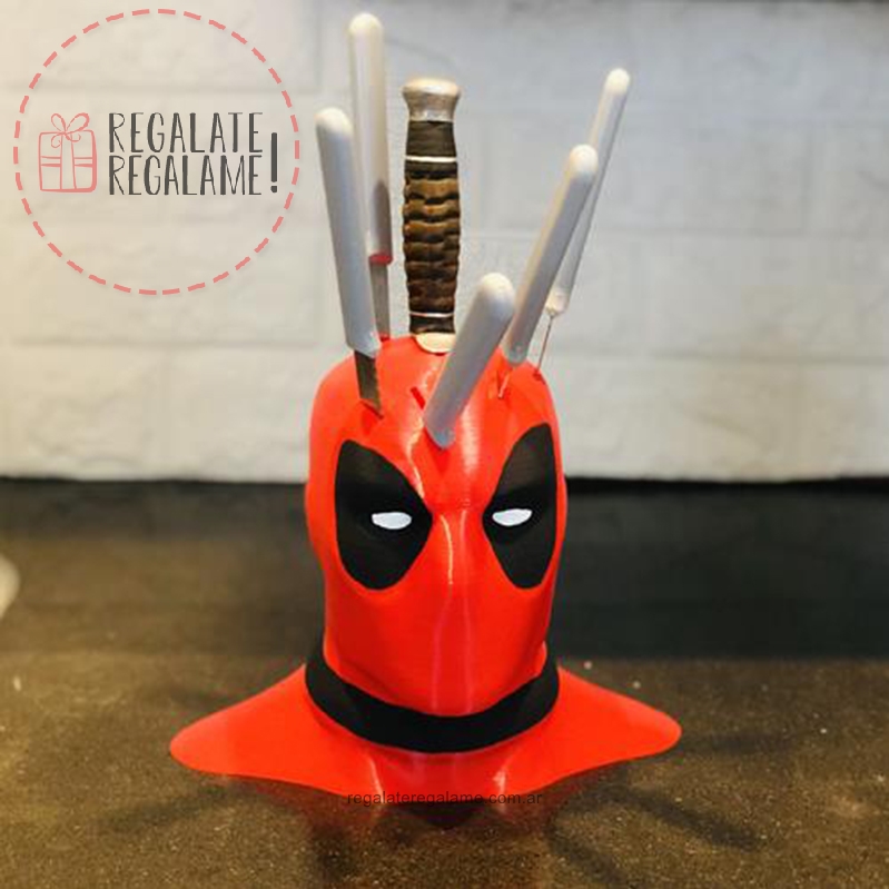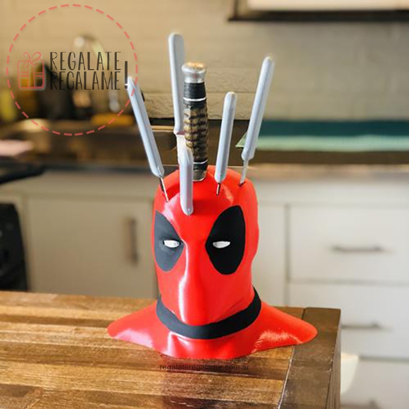 Lo mejor para tu cocina, porta cuchillos de deadpool, 18cm de altura, podes colocar hasta 6 cuchillos de distintos tamaños.