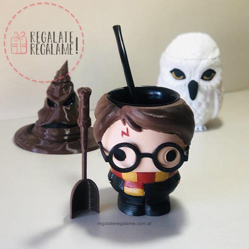 Exclusivo set de mate harry potter versión full! Incluye azucarera sombrero seleccionador, yerbera buho Hedwig, cuchara de varita y mate harry completo. El set viene con bombilla