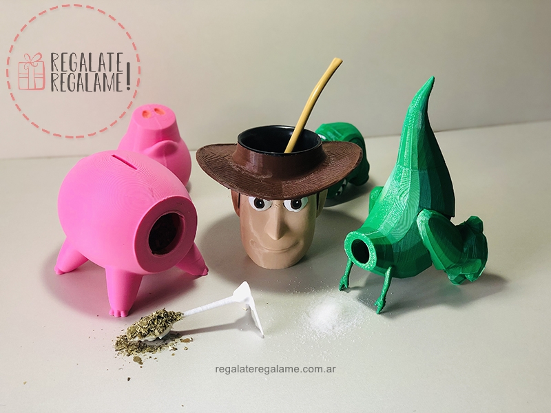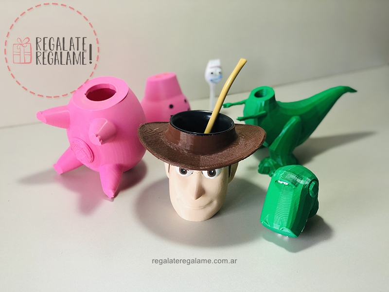 Set de mate de toy story, incluye mate de woody, cucharita de florky, yerbera de chanchito hamm, azucatera de rex y bombilla. Listo para usar! Encarga el tuyo