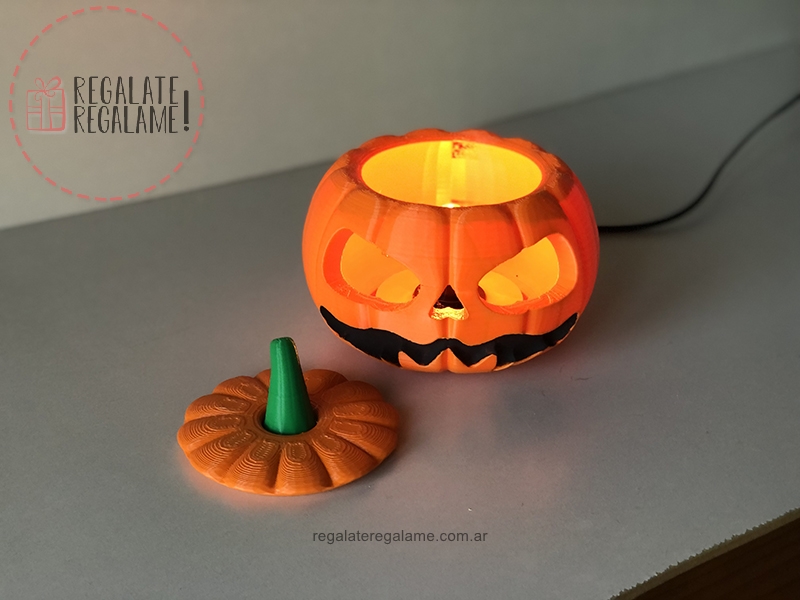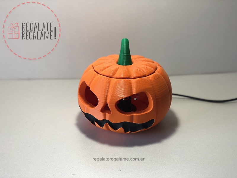 Calabaza velador calabaza halloween, ideal para decorar tu casa o tu cuarto. Funciona con lampara de rosca fina, cable con interruptor de 1,5m. Altura 14cm y diámetro de 16cm. El producto no incluye Lampara.Â