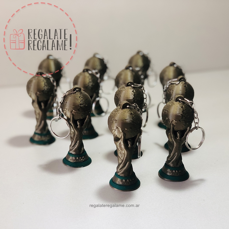 Llaveros copa del mundo fifa. Realizados en color bronce brilloso simil dorado. Altura de 8cm