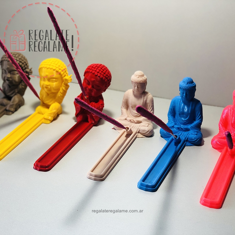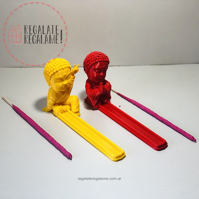 Porta sahumerio de buda, dos versiones de buditas bebe, uno con dos manos agarrando el sahumerio y otro haciendo el simbolo de la paz. Altura de 12cm y largo de 20cm para recoger el sahumerio ya quemado. Pedilo en el color que mas te guste.