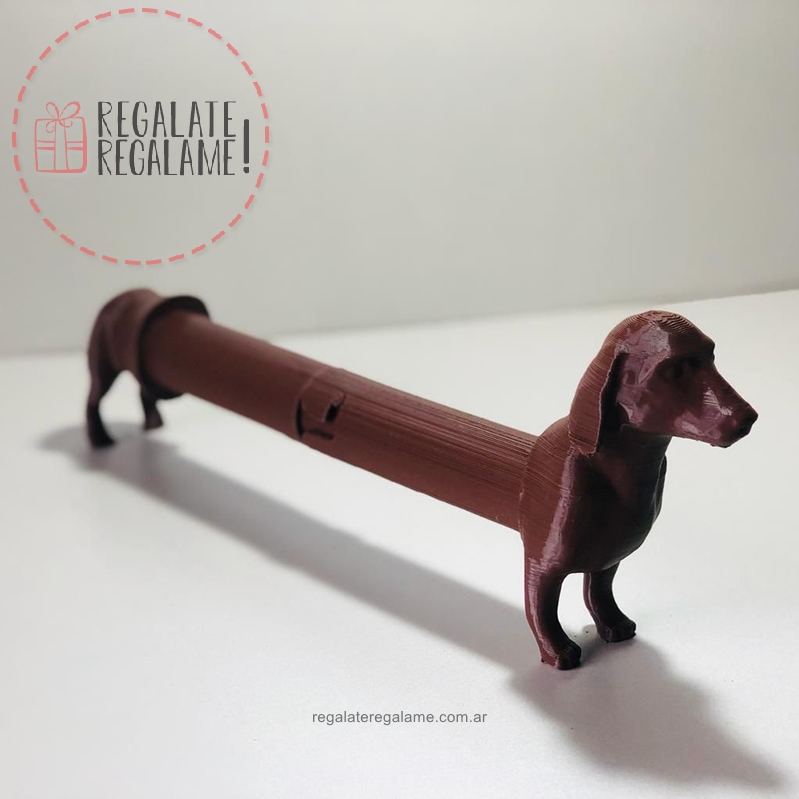 Perro salchicha porta rollo para la cocina. 33cm de largo en total, 19cm para colocar el rollo y tiene una altura 15cm. se puede hacer en cualquier color.