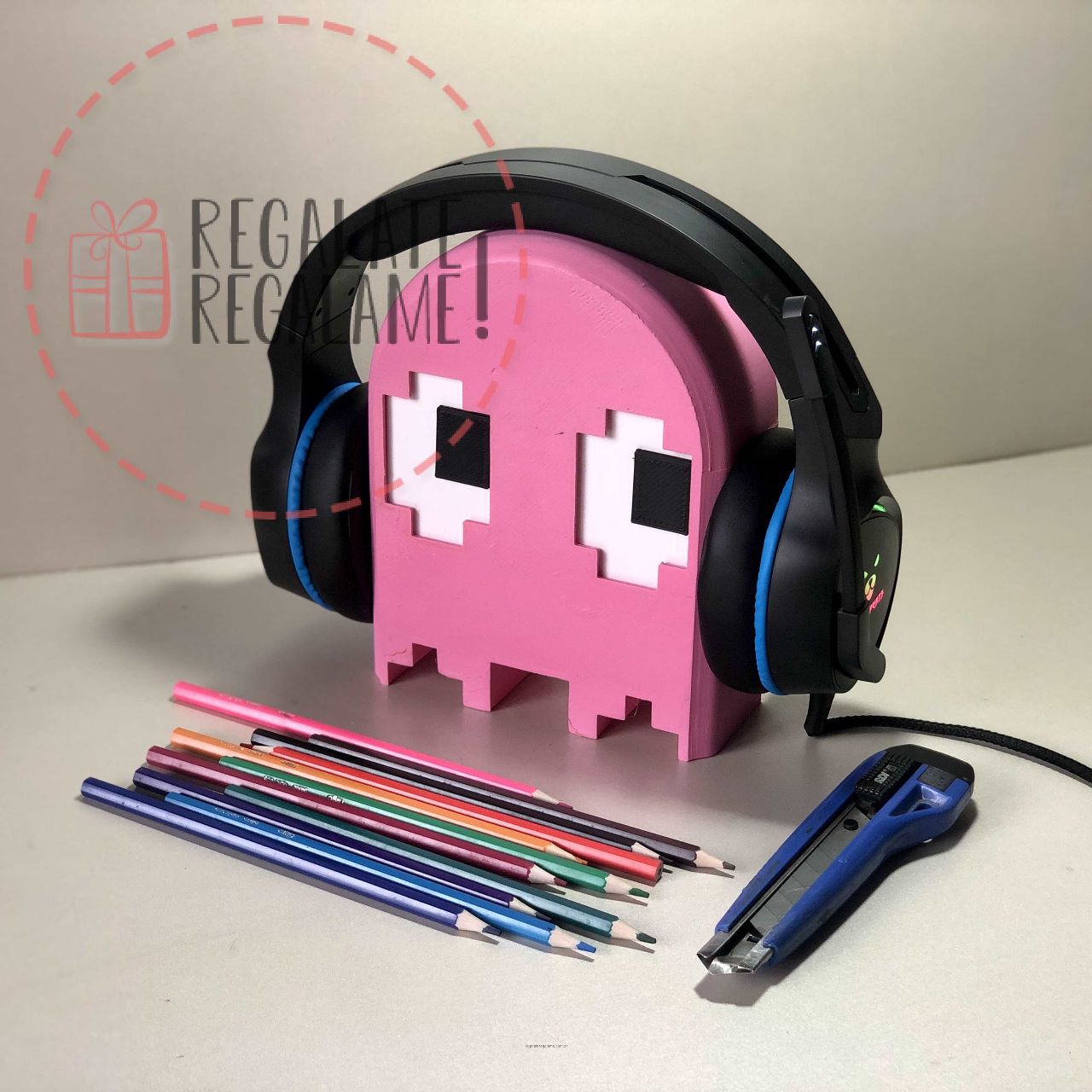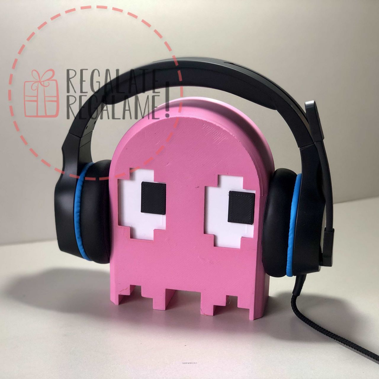 Soporte o Porta auriculares o porta cascos del fantasmita del clásico Pacman. Podes encargarlo en cualquier color, celeste, verde, rojo… cuanta con compartimiento para ordenar tu escritorio o los cables de tus auriculares. Altura total 20cm, ancho 15cm, profundidad 6cm.