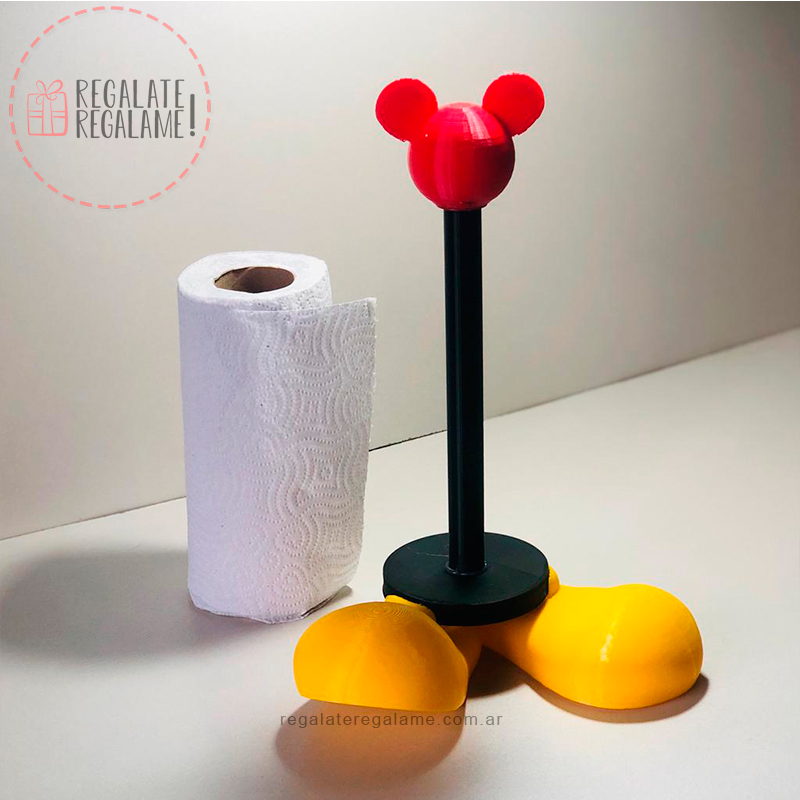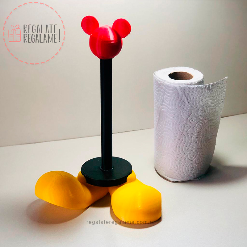 Porta rollo de cocina con formato de mickey. base con los pies amarrillos de 22cm de ancho por 12cm de largo, palo para el rolllo de 20 a 22cm. parte superior a rosca para poder trabar correctamente el papel.