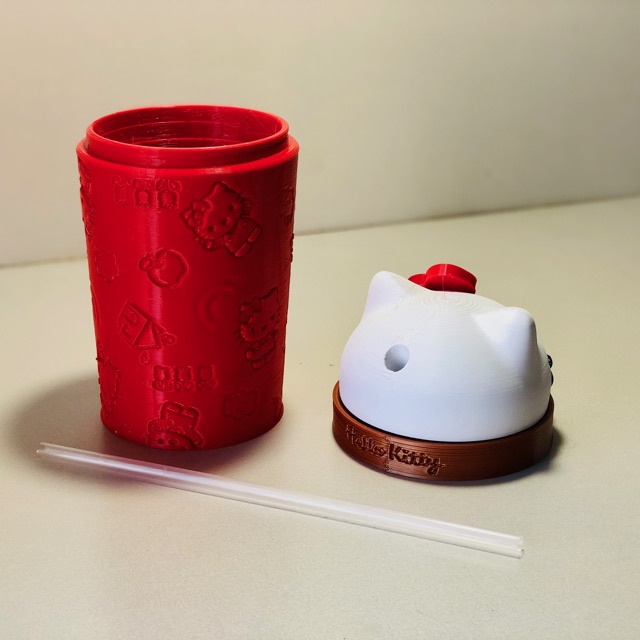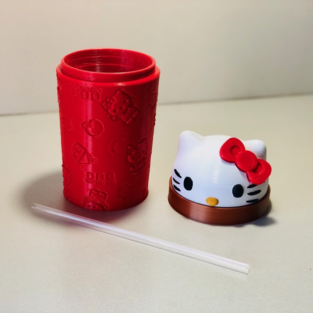 Vaso milkshake de deadpool con sorbete y tapa. Tiene una altura de 17cm y un diámetro de 11cm aproximadamente.