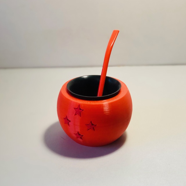 Mate dragon ball en color naranja con 4 estrellas rojas. Incluye bombilla