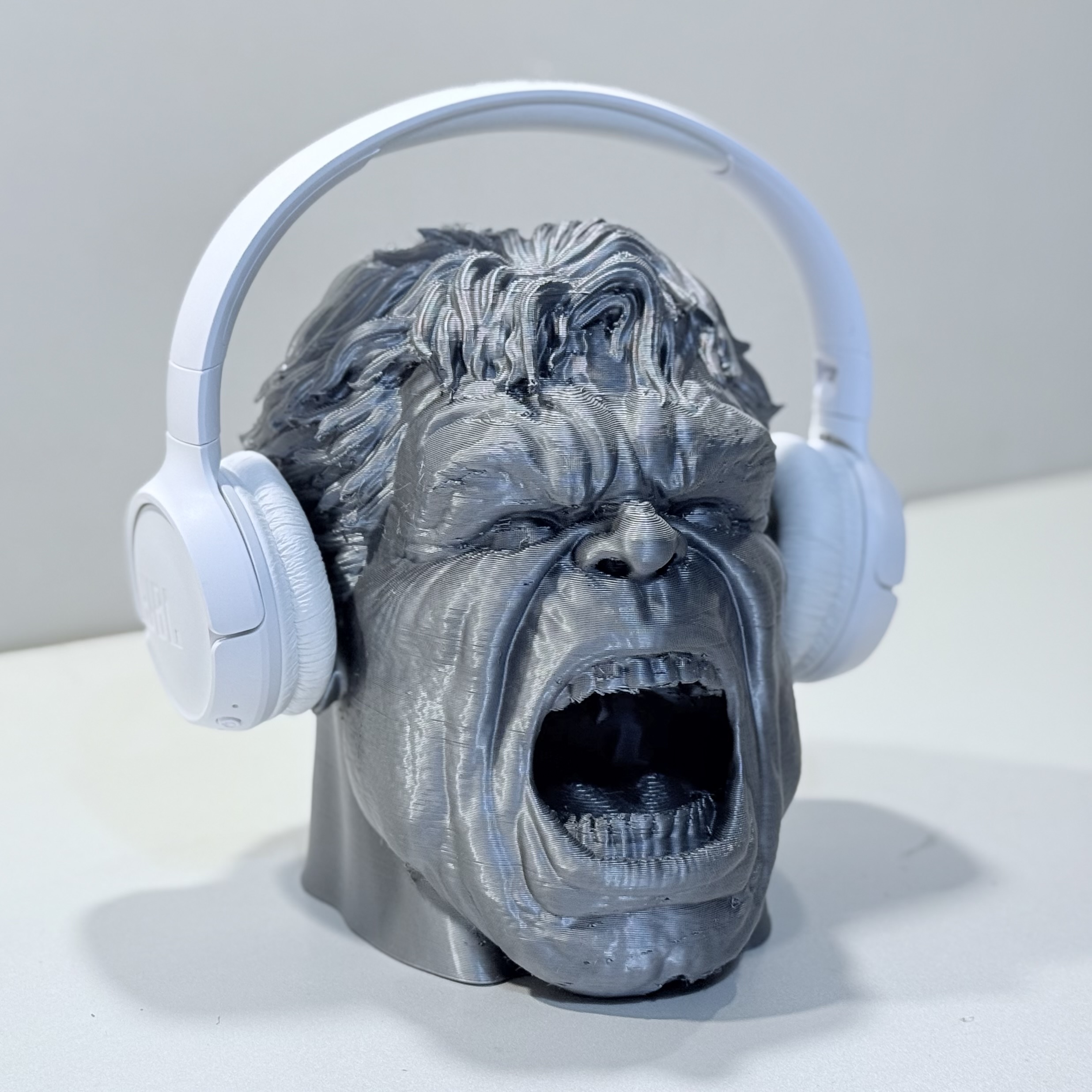 Porta auriculares de hulk, tamaño de la cabeza 19cm de alto, 17cm de ancho y 20 de largo. Encárgalo en verde o en el color que mas te guste!